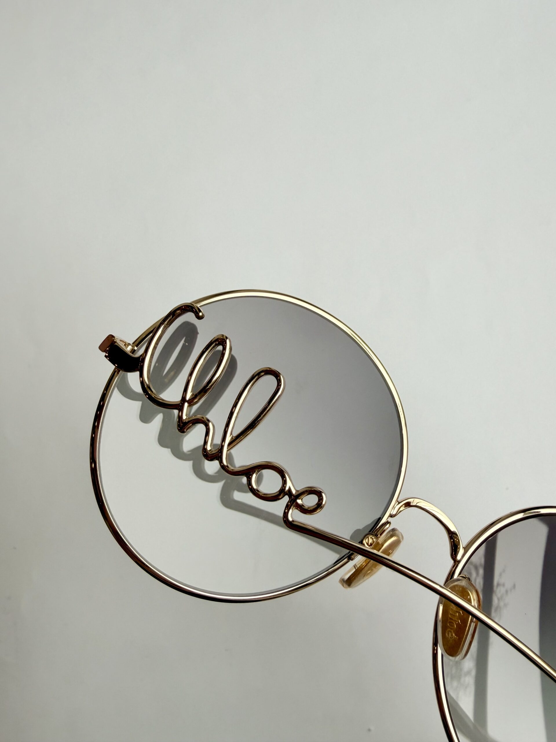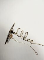 Metalowe zauszniki z ciekawym, oryginalnym napisem Chloe po jednej stronie